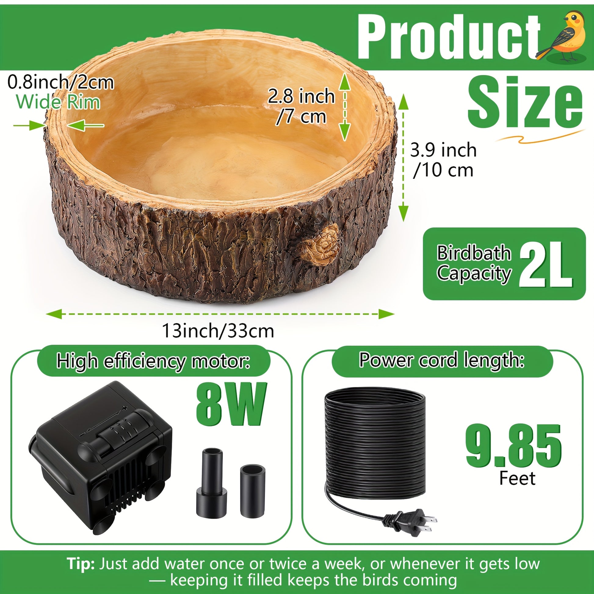 1 Outdoor Bird Bath Fountain with Adjustable 2 Nozzles, Easy Assembly Durable Garden Decor - Attracts Birds to Yard, Patio, Balcony, Lawn, Bird Baths for Outdoors, Patio Decoration, Trunklike Design, Natural Appearance, Reali