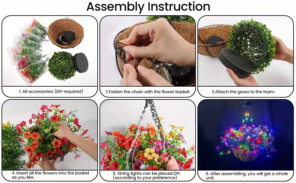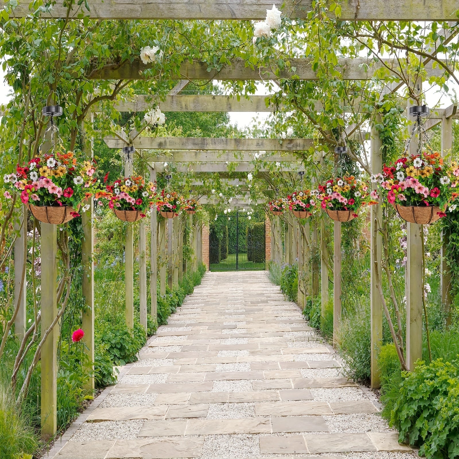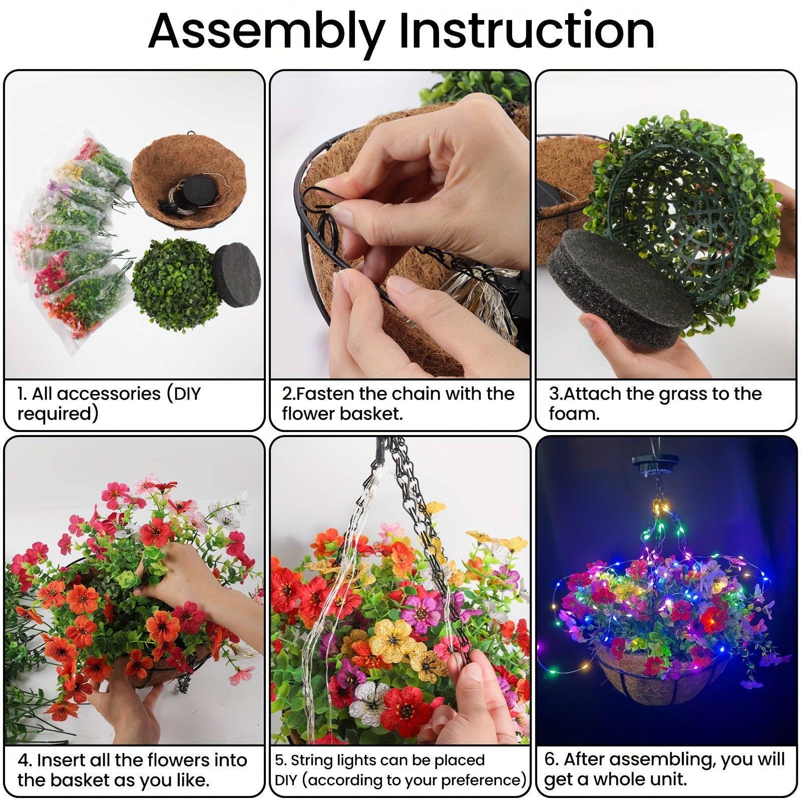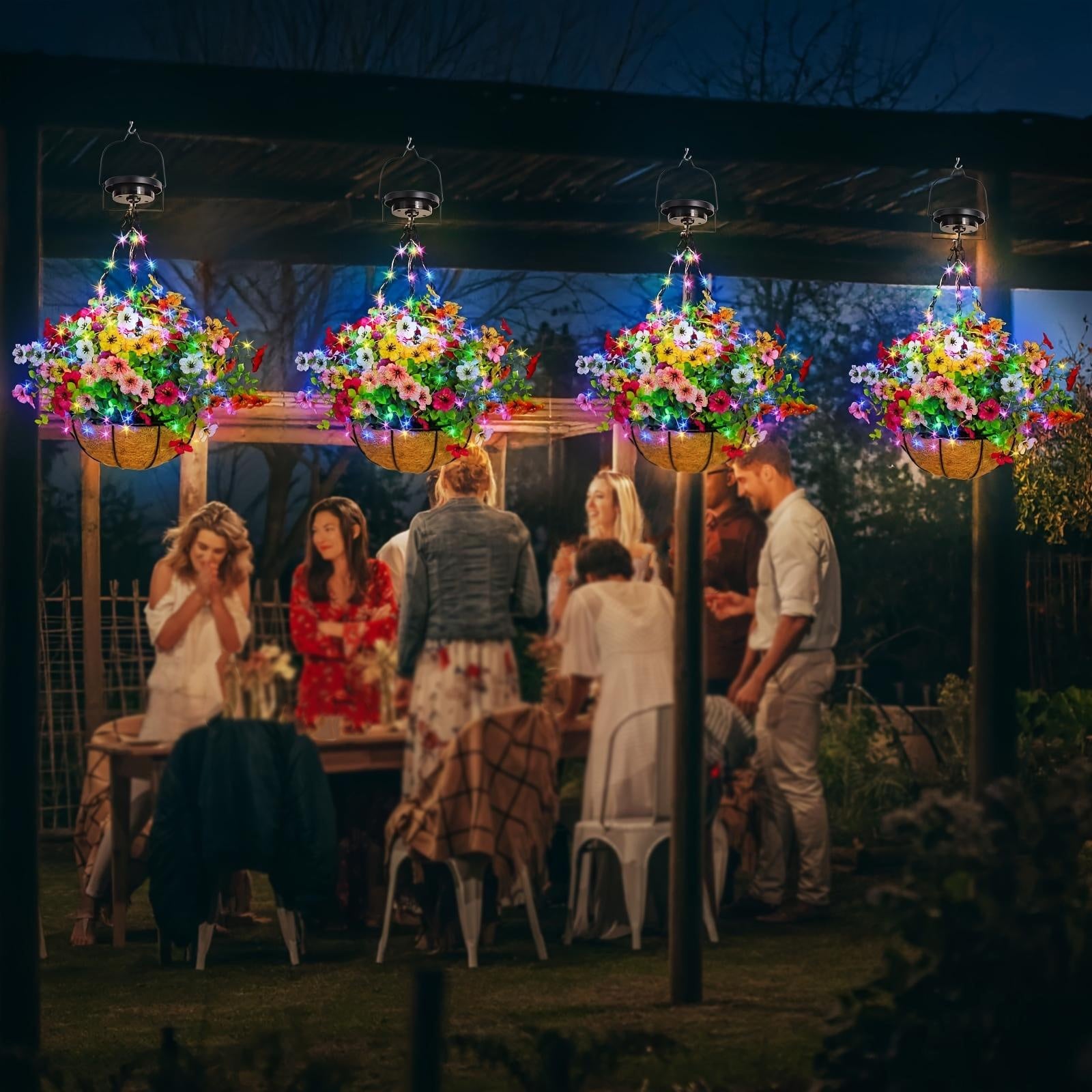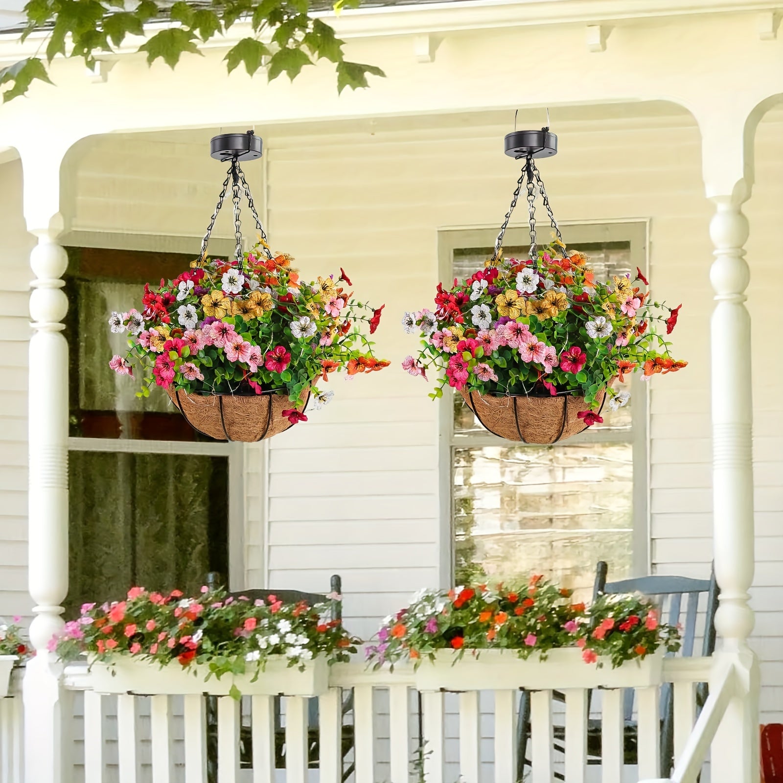 These solar-lit hanging baskets are ideal for brightening and beautifying outdoor areas such as porches, patios, gardens, yards, and flower pots, providing a warm glow that enhances your home's appearance. Solar lights can establish a cozy and romantic ambiance, particularly in the evening or in dim indoor lighting, allowing you and your family to appreciate your lovely flower baskets while relaxing outdoors.