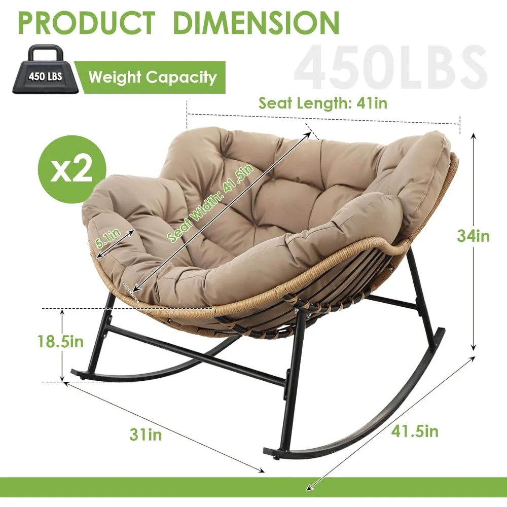 2 pcs Rocking Egg Chair, Indoor Outdoor Oversized Lounge Chair, Wicker Papasan Rocker with Water Resistant Cushion Cover, 450 l