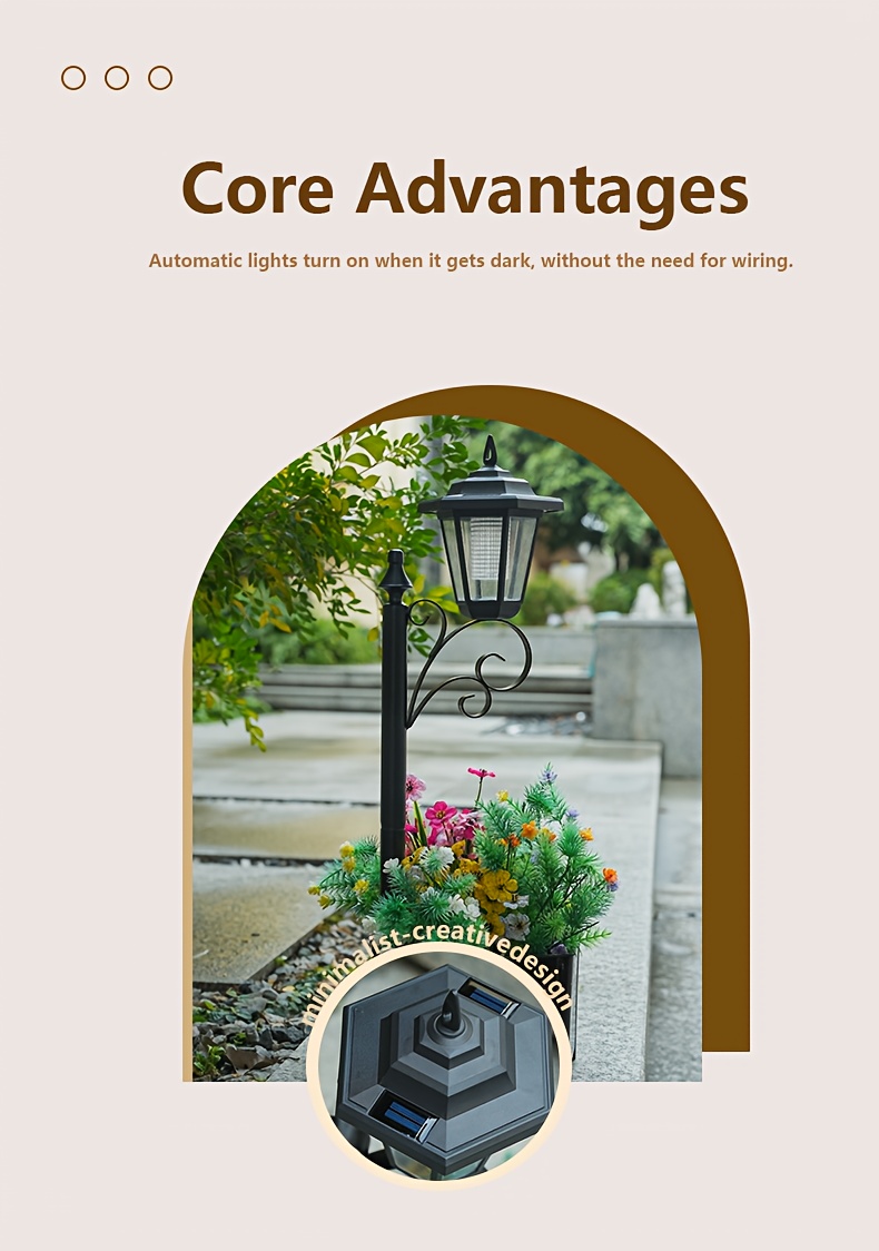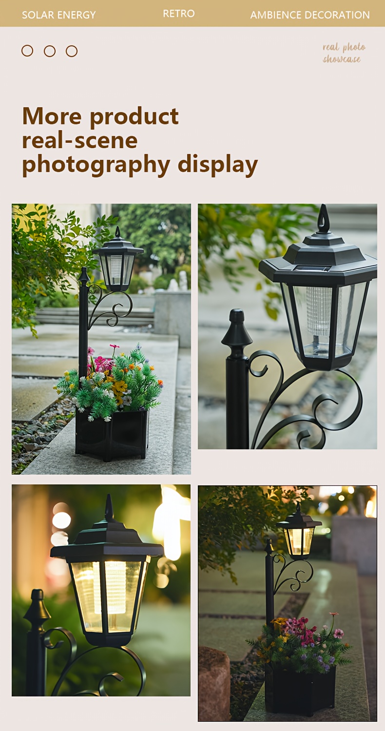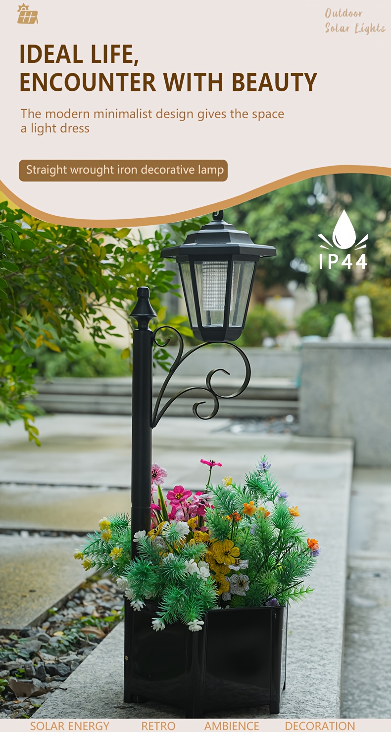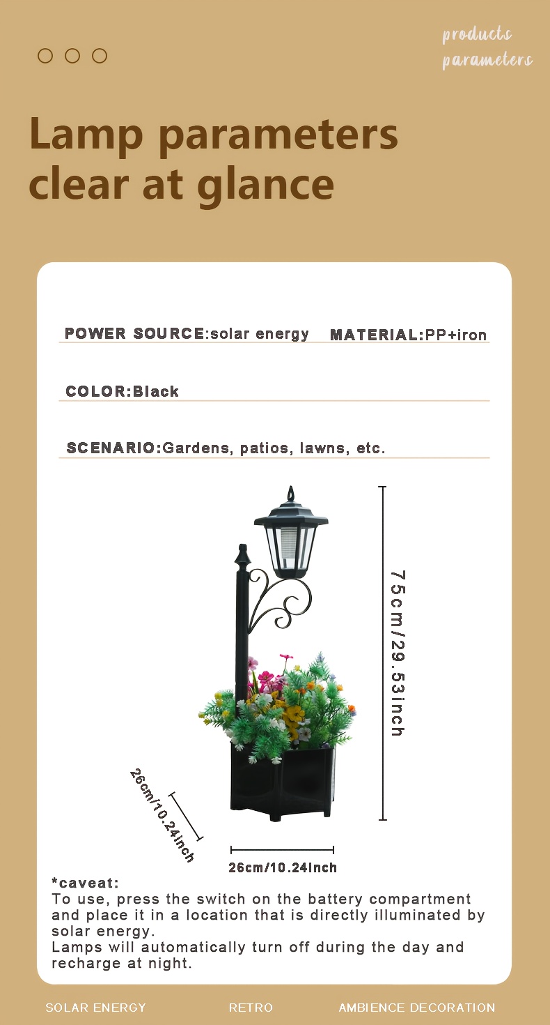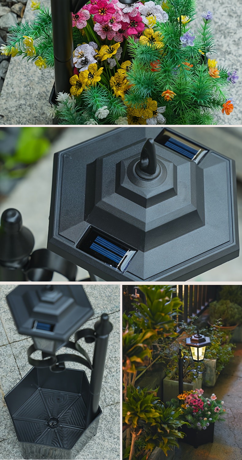 29.5" Solar Outdoor Floor Lamps with Planter - IP44 Warm White Light, Easy Install LED Planters for Lawn, Patio, Front/Back Door Decor
