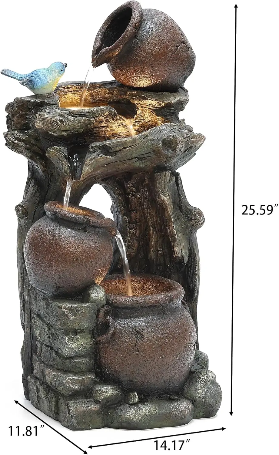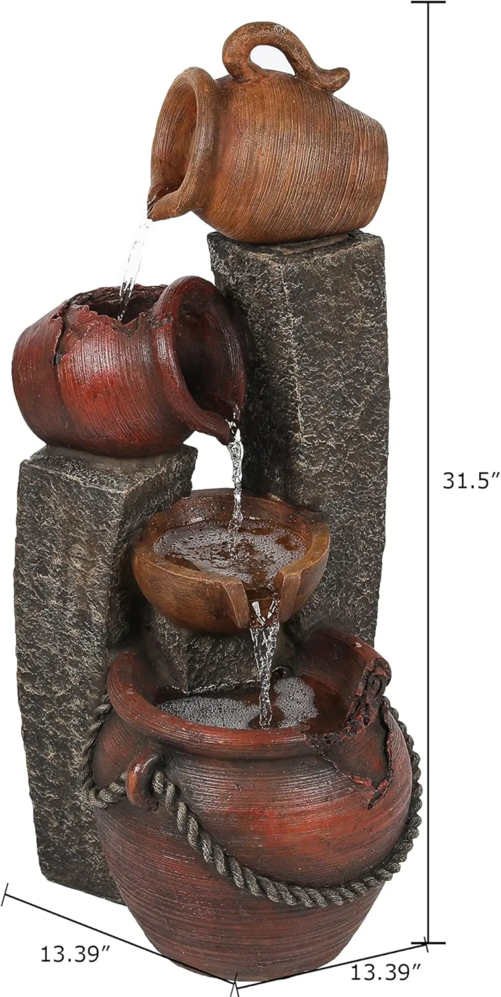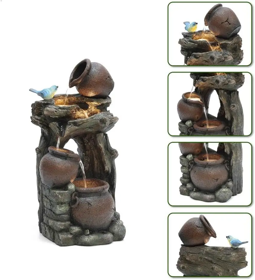- Charming Rustic Design: Enhance your space with this beautifully crafted outdoor water fountain featuring cascading water through rustic-style pots, adding a serene ambiance to your garden, patio, or indoor décor.