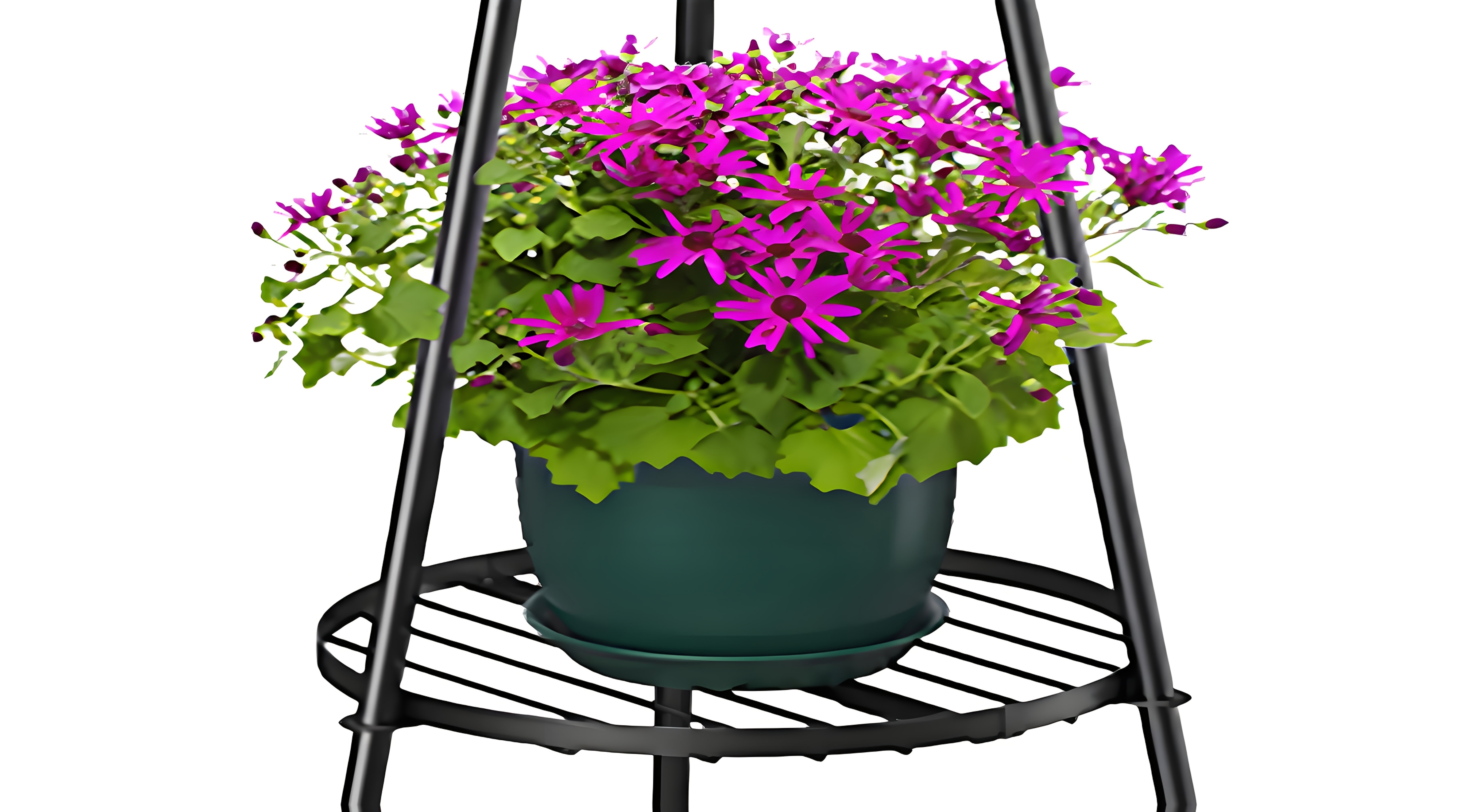 Circular, sunken plant holder. The circular, recessed shelf is designed to accommodate pots with a diameter of 6 to 8 inches. Kindly avoid placing the plant holder in an inverted position.