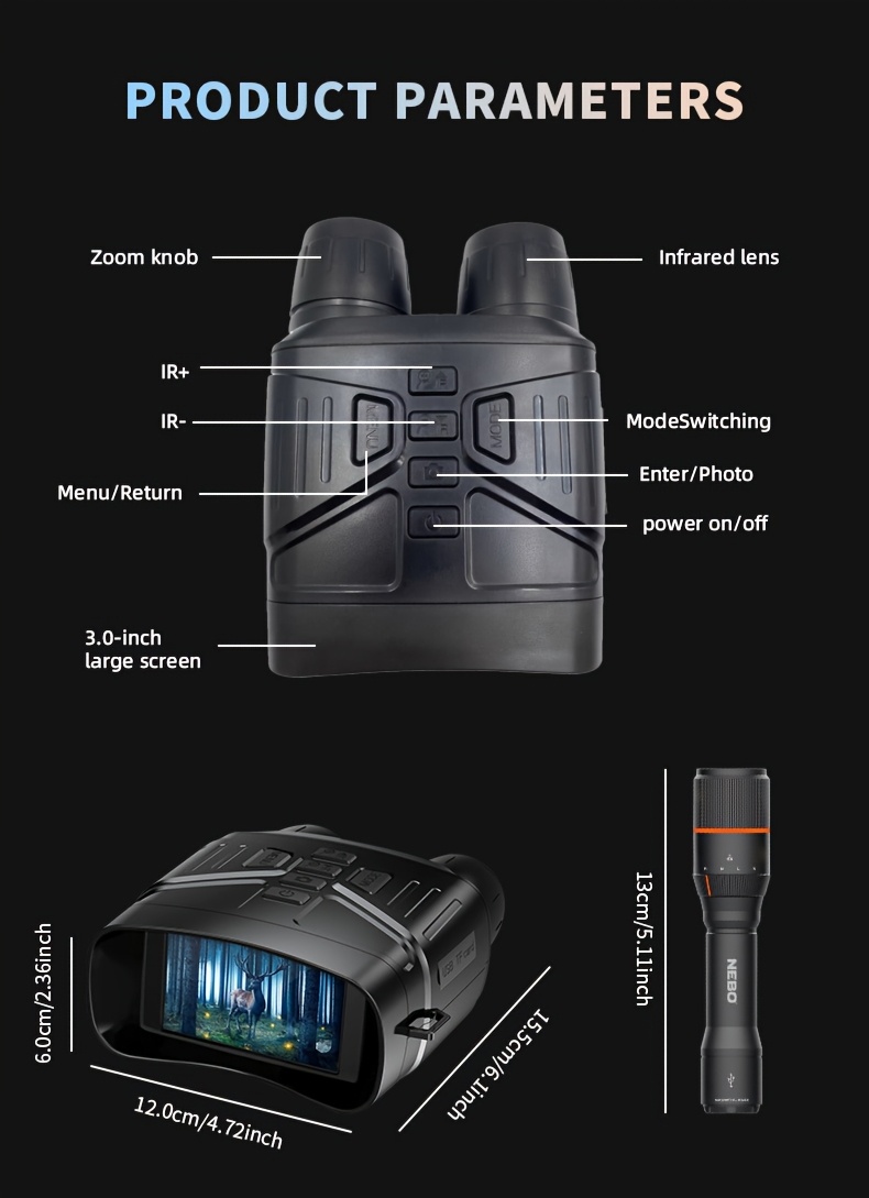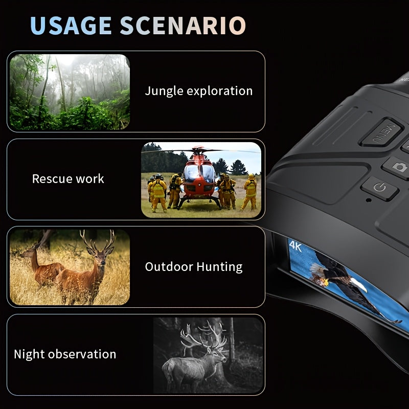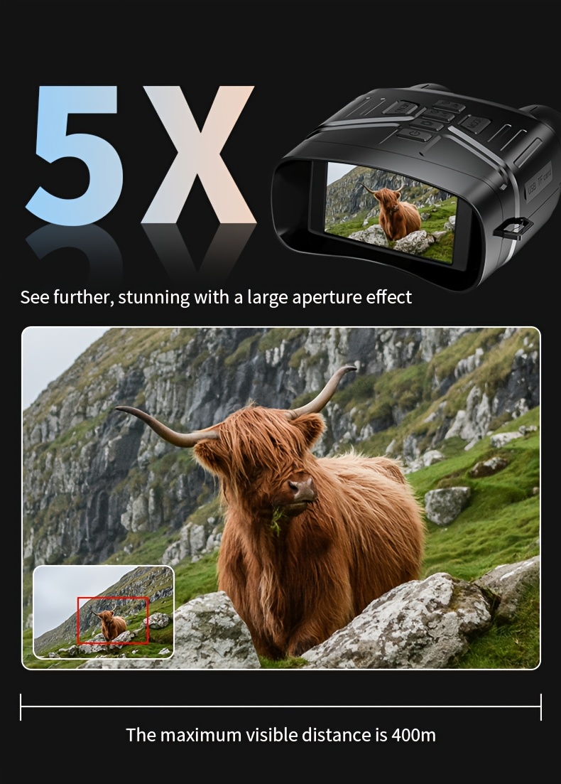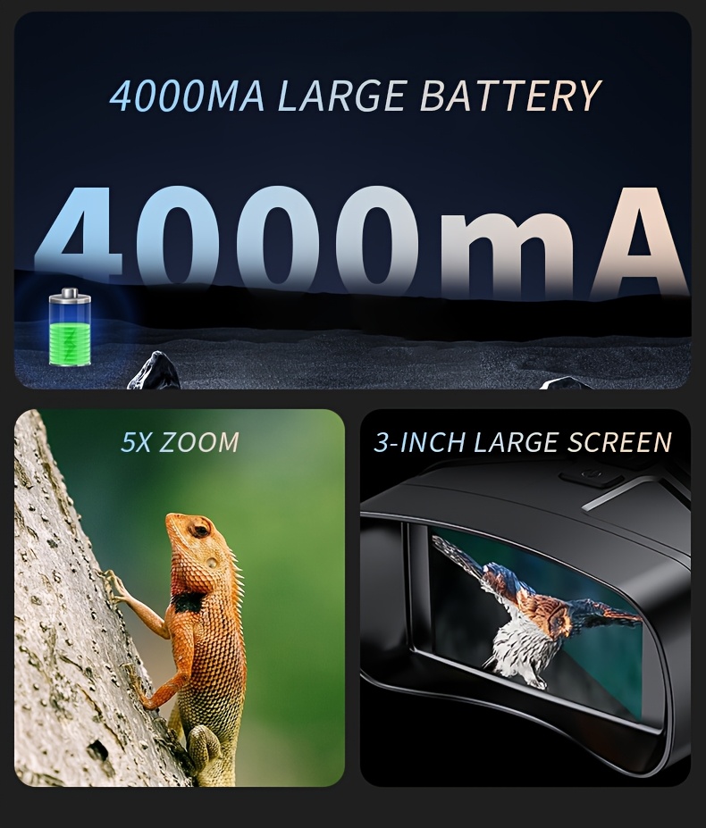 4K HD 5x Zoom Night Vision 36MP Night Infrared Detection Screen Binoculars 3.0 Inch "(800 * 480) HD TFT Screen Built-in 4000mA Lithium Battery Video Camera to Take Pictures, Full Black Observation Distance: 400m, Infrared Lam