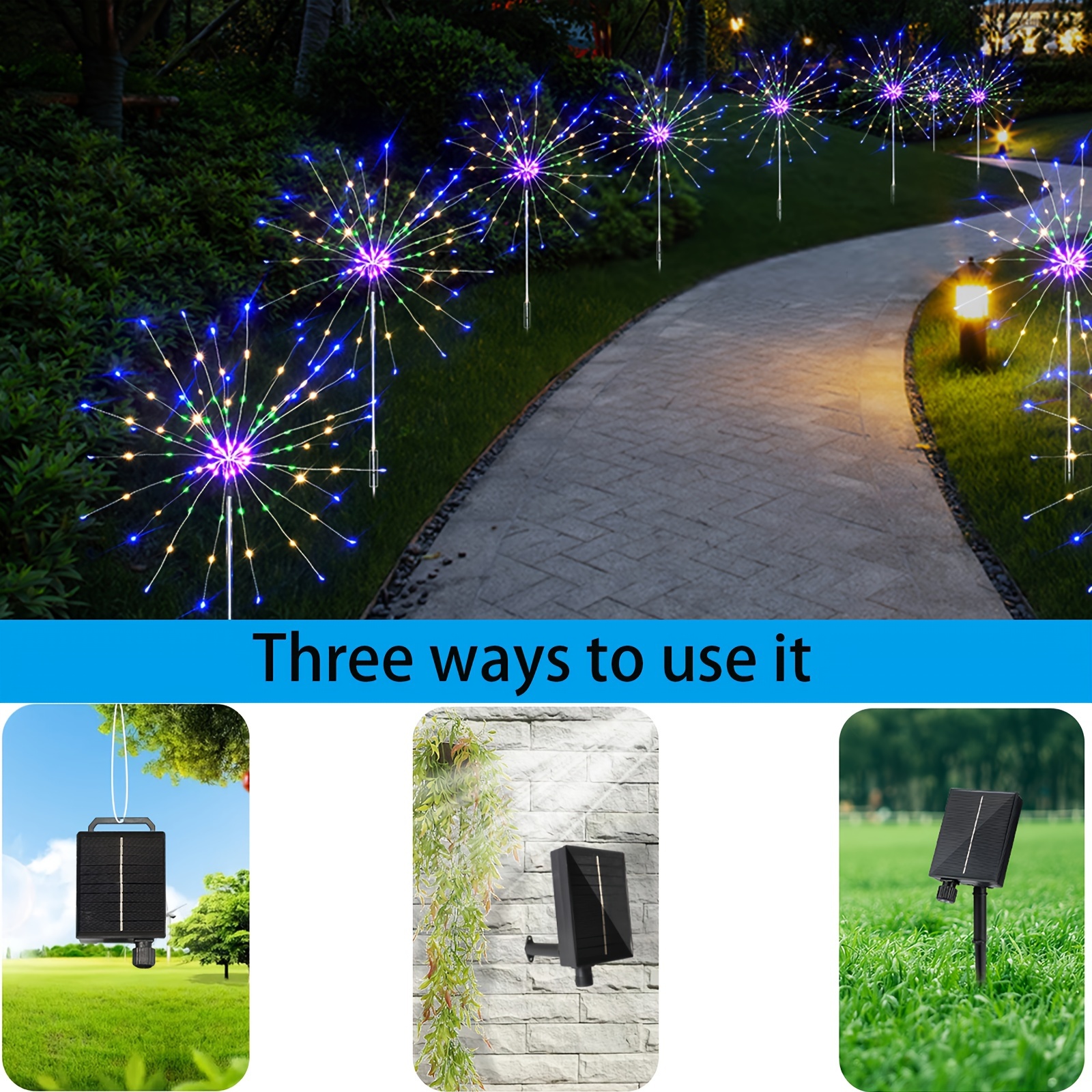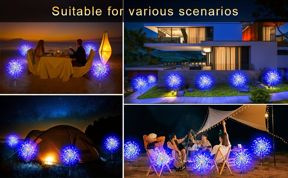 6 Pack Solar Firework Lights, 720 LED Lights USB Charging, 8 Lighting Modes With Remote Control, 4 Brightness DIY Firefly Lamp For Path Christmas Party