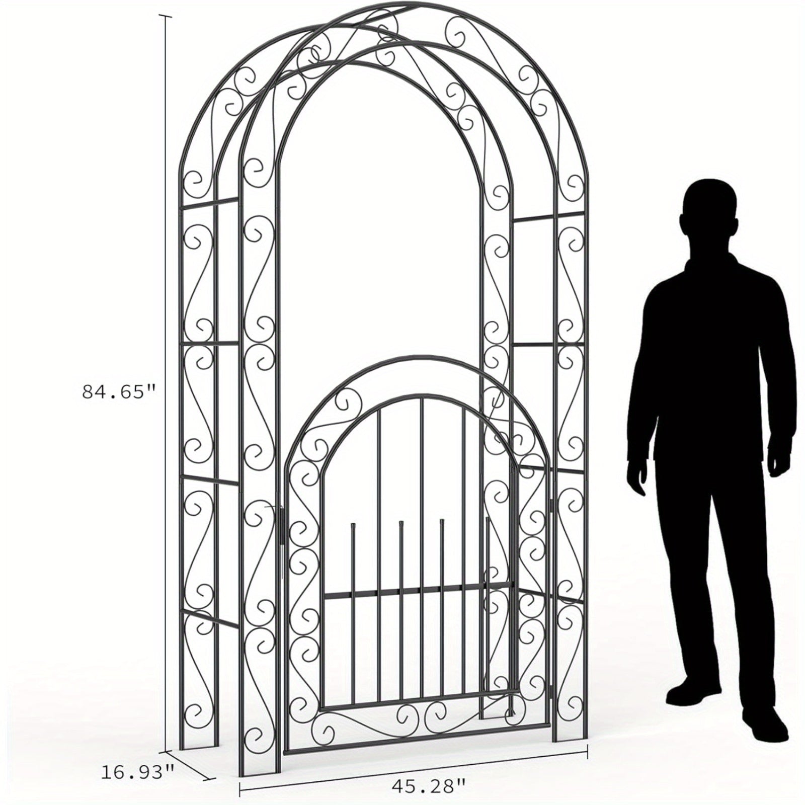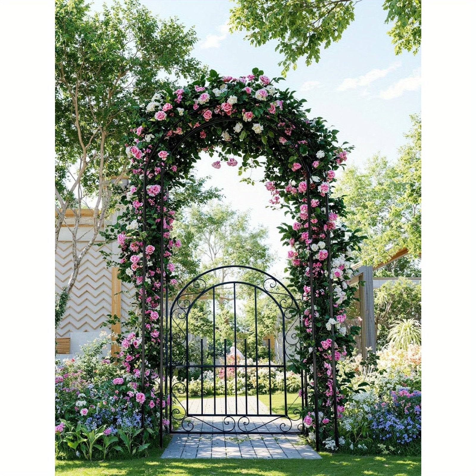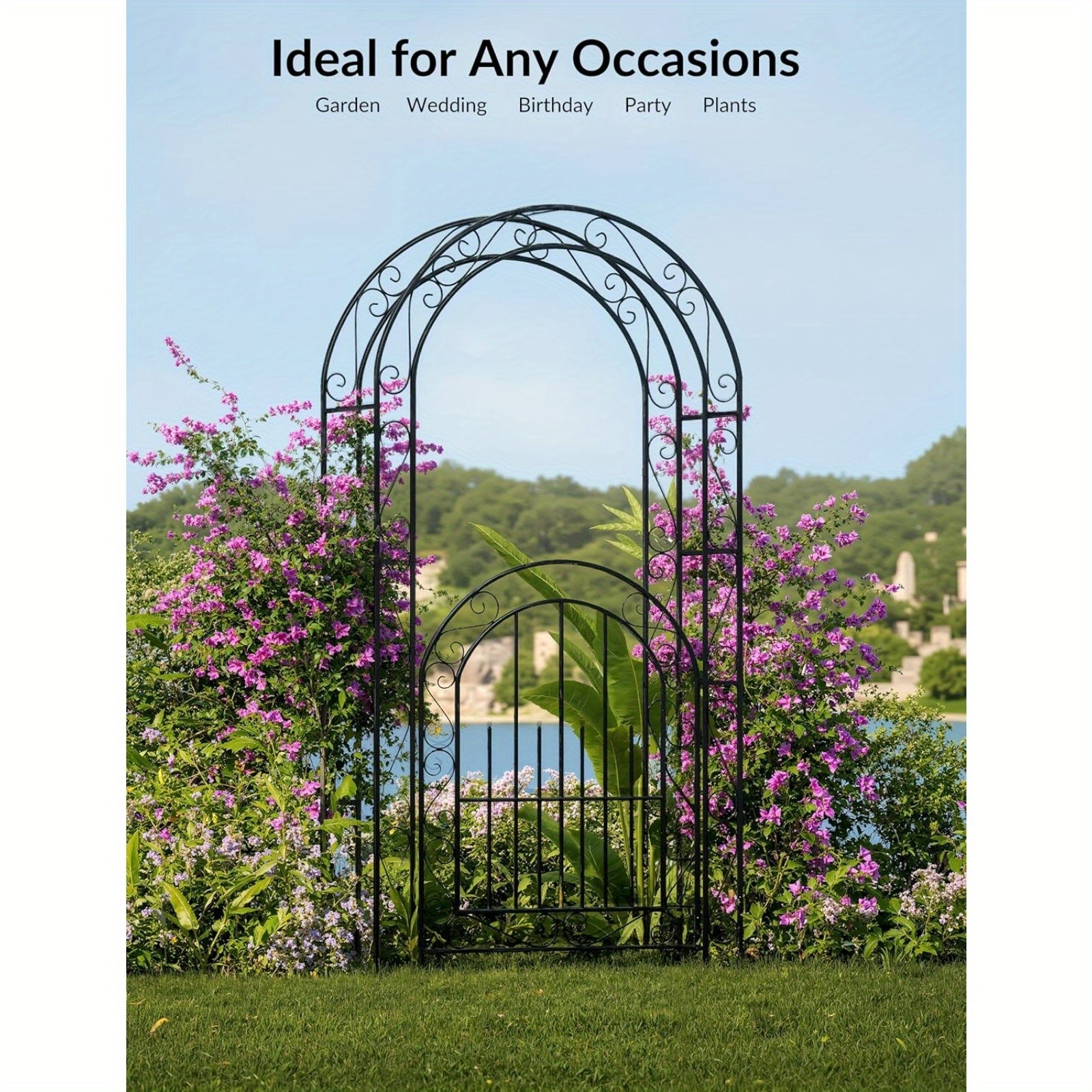 7ft Elegant Garden Arch Trellis with Gate - Romantic Irons Wedding Arbor for Climbing Roses & Flowers, Decorative Metal Archway for Backyard, Patio or Lawn, Classic Black, Durable Metal Construction, Easy Assembly, No Tools N