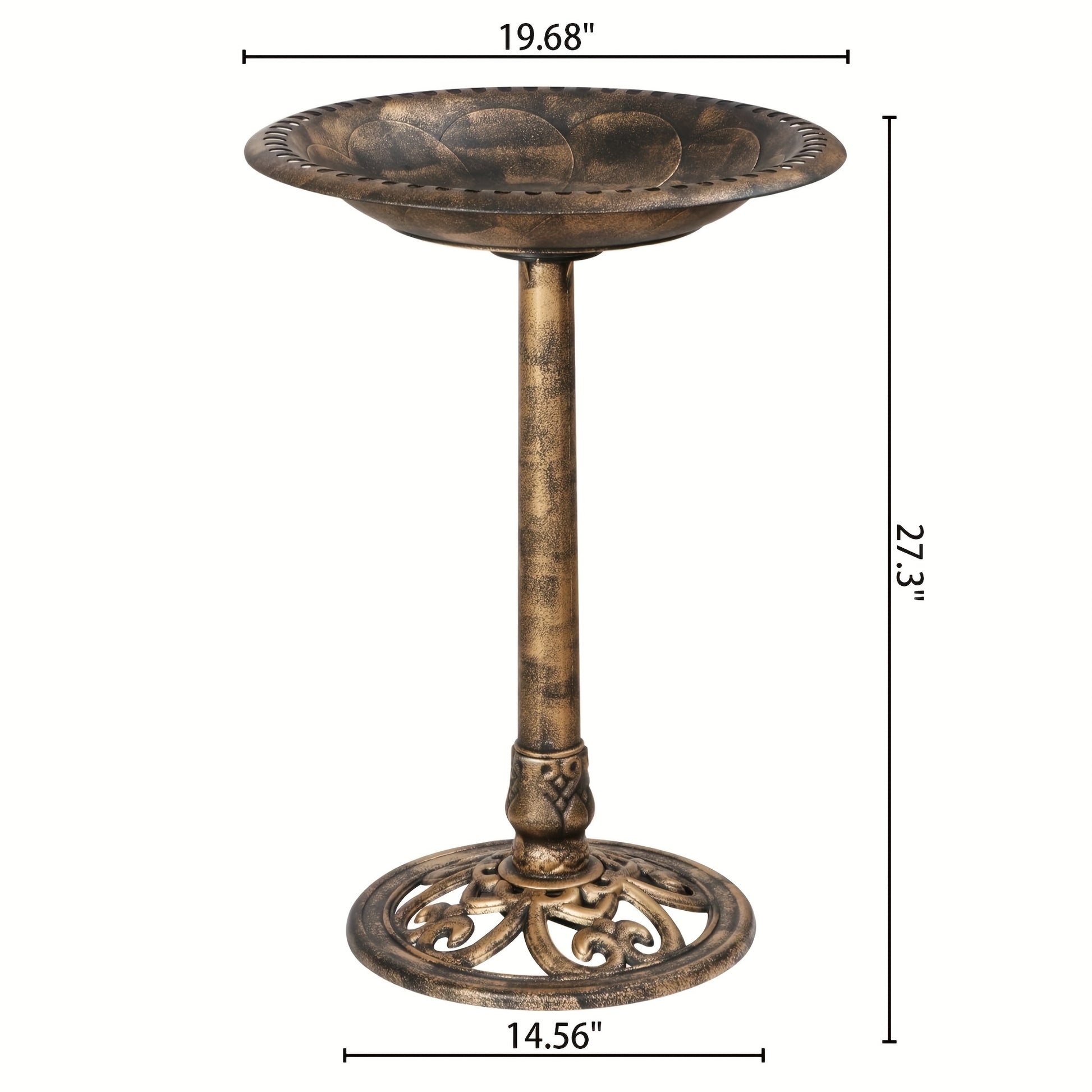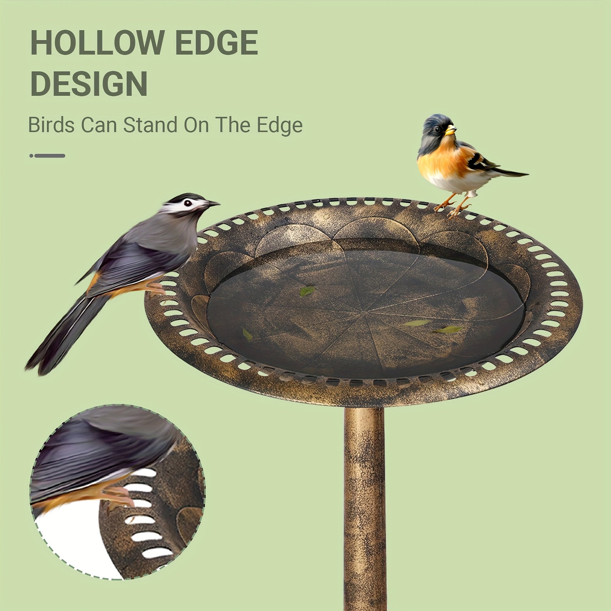 Antique Copper- Polyresin Bird Bath Fountain - Ornate Leaf-Design Lightweight Birdbath with Central Basin, Durable Outdoor Garden Decor for Attracting Birds, Goldfinches & Robins - Low-Maintenance Yard Water Feature