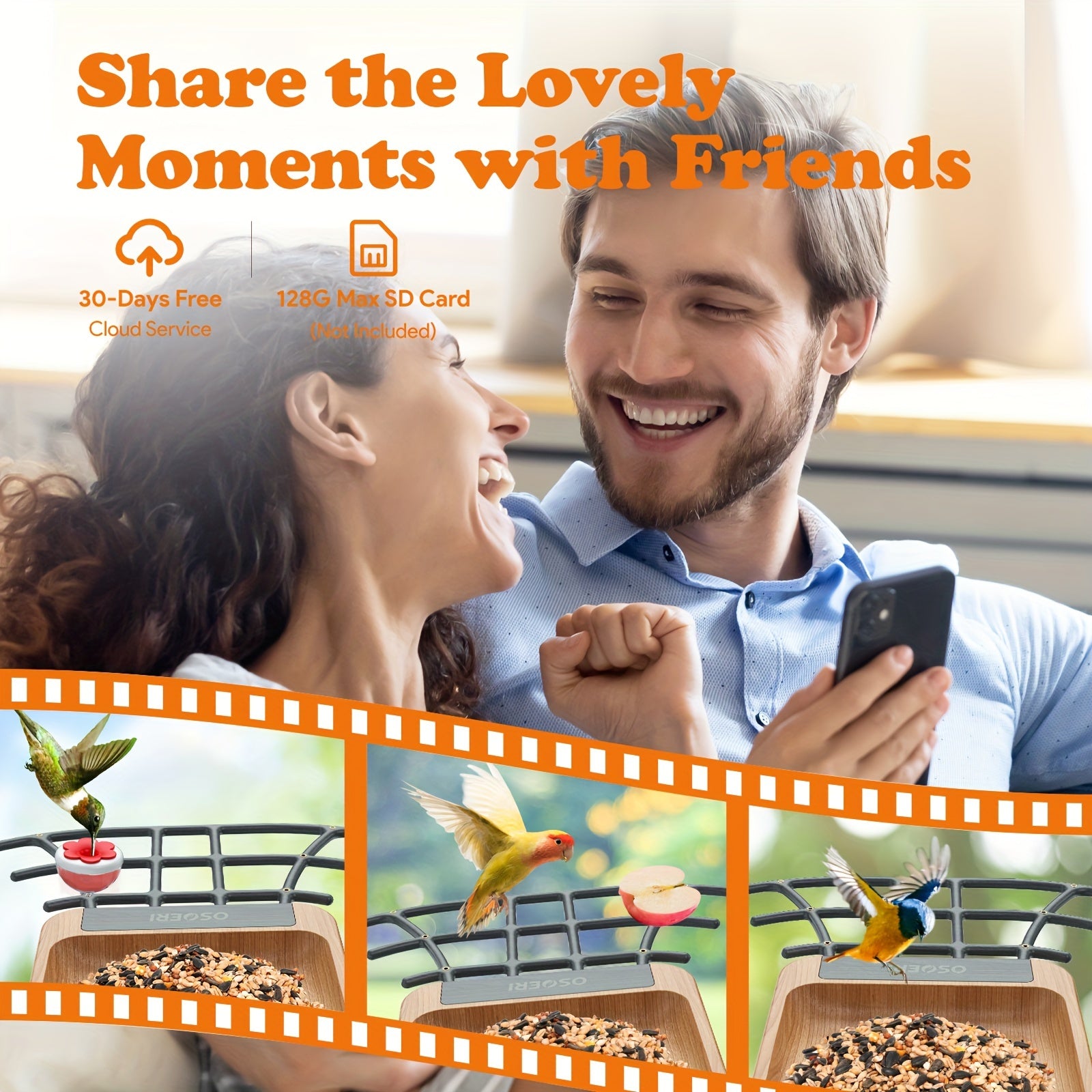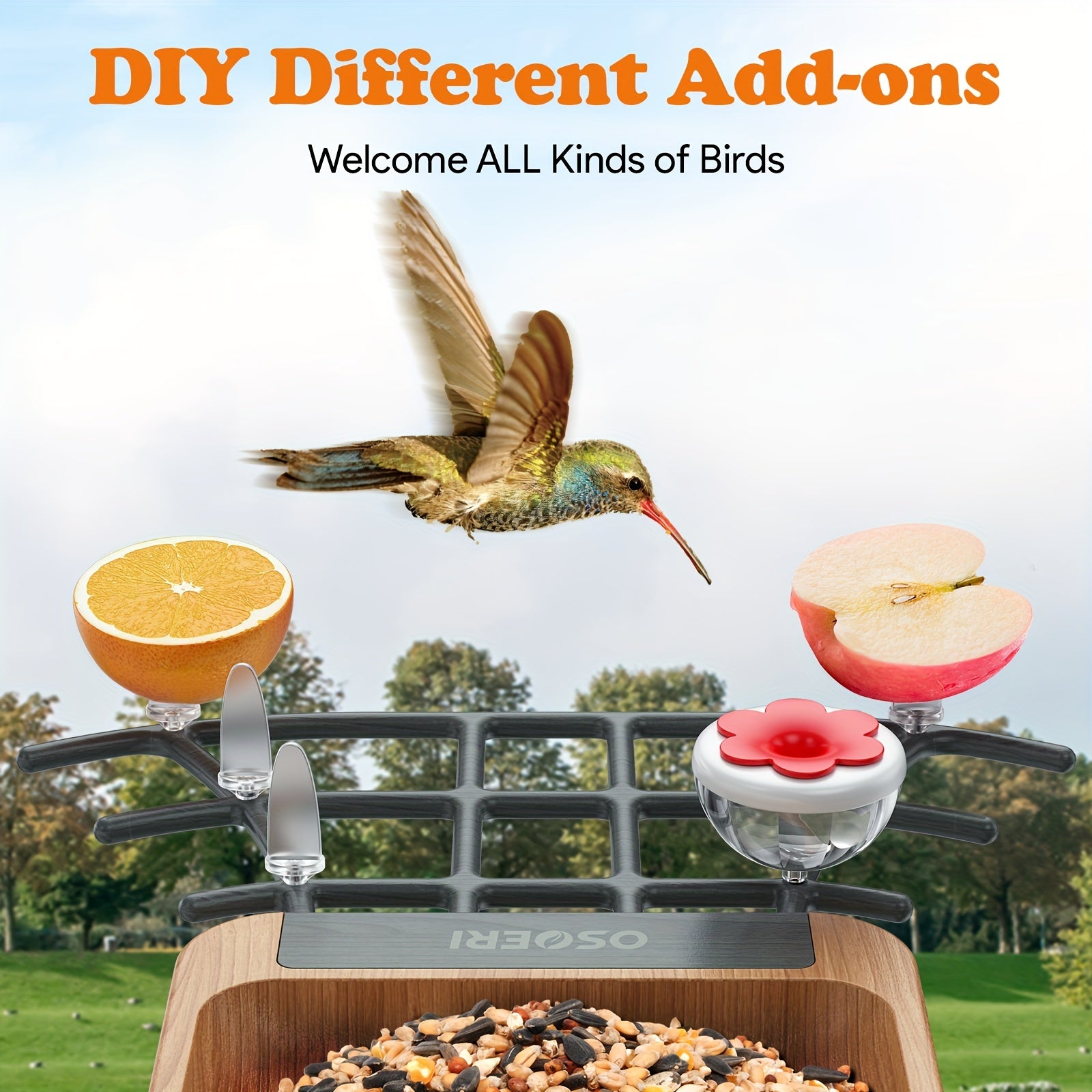Bird Feeder With Camera, Smart AI Identify Wild Bird Feeder Camera Solar Powered, Auto Capture Bird Videos & Motion Detection, DIY Add-ons & Hummingbird Feeder, Bird Camera Gift For Bird Lover-Wood