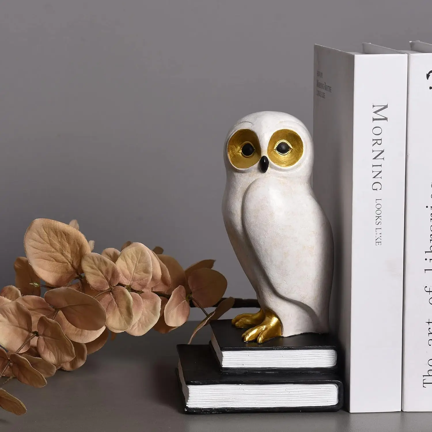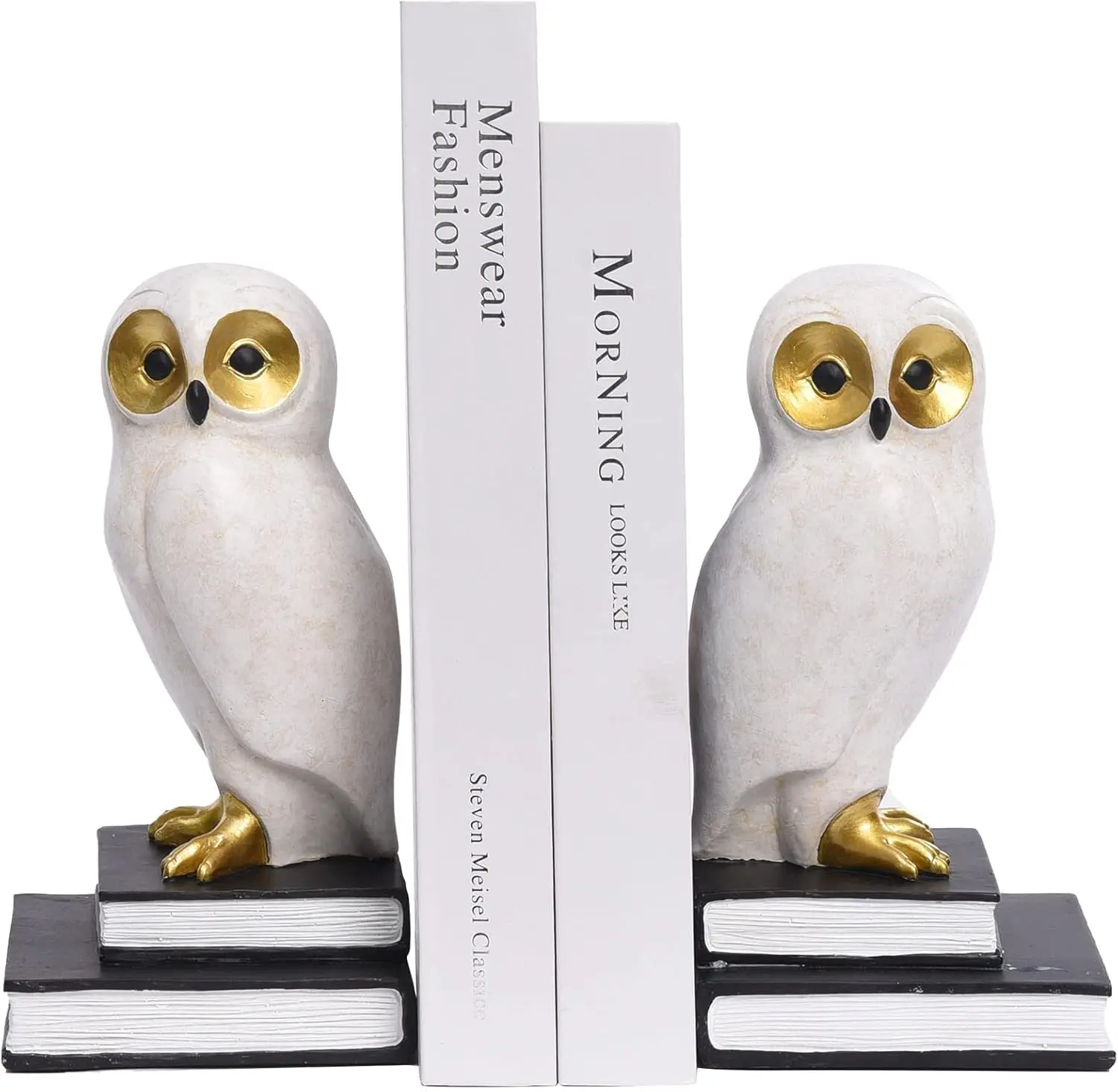 Book Ends for Shelves, Owl Decorative Bookends Bronze Bird Book Stopper Unique Kids Book Holders with Anti-Slip Base Luxurious Bookends for Kids Rooms Office Home Decor(White)