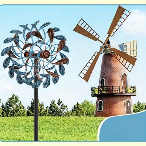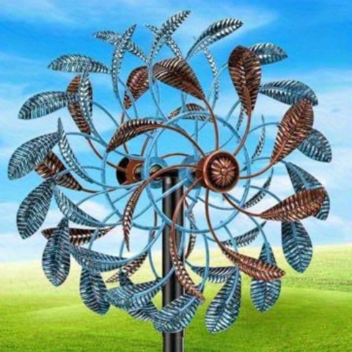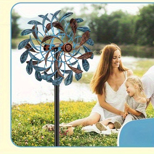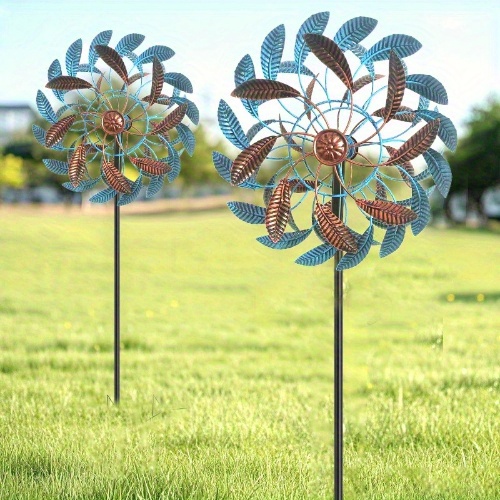 Extra Large Kinetic Wind Spinner - Heavy-Duty Iron Construction, Turquoise & Brown Garden Decor - 360° Rotating Outdoor Yard Art with Sturdy Metal Stake - Large Pinwheel for Patio, Lawn, Farm - Wind-Powered Motion - Spinnin