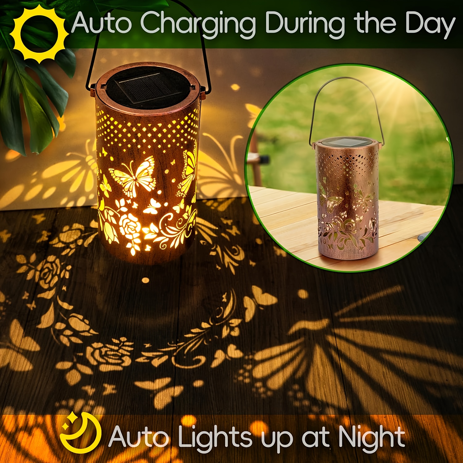 Large Updated Solar Iron Outdoor Decorative Lights - With 3D Dynamic Projection And Solar Battery, Floral And Butterfly Cutouts, IP65, Warm Ambiance Glow Suitable For Courtyards, Balconies, Or Lawns, Perfect Gift.