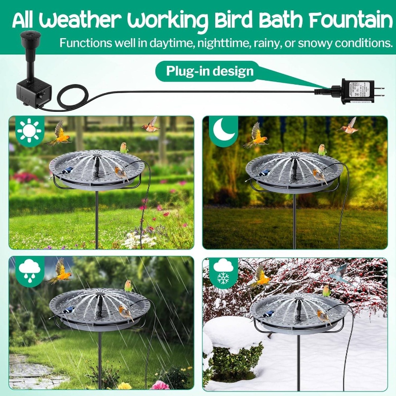 Outdoor/ Bird Bath Fountain Set with 5W Pump - 24-Hour Waterfall & Basin, Auto Shut-Off & Dry Run, Easy Installation for Garden,, Yard Bird Feeding Area, Submersible Water Fountain Pump, Water Pump Fountain, Fountain Pumps Fo