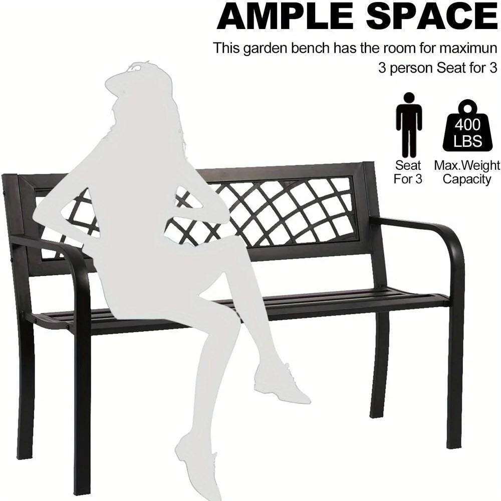 【Sturdy and Rust-Resistant】The Garden Bench is powder coated with rust-resistant finish, super smooth. The Park Bench is made of reinforced steel to ensure sturdiness and stability, durable and the Metal Bench perfect for use for years.The outdoor bench can hold up to 400LBS.