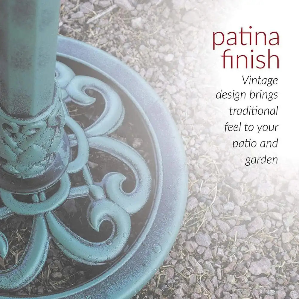 Description Color Family Blue Material Plastic Number of Pieces 1 Number of Tiers 3 Product Weight (lb) 5.84 lb Pump Included Yes Style Farmhouse,Mediterranean,Mission,Rustic,Southwestern Stunning birdbath: quality birdbath is sure to attract feathered friends and create a charismatic ambiance for your garden, patio, deck, yard, or other outdoor space Shallow shape: shallow and wide bowl assures that multiple small birds can drink and bathe safely at the same time Beautiful design: rustic green color offers vintage weathered accents for a stylish antique look Durable construction: molded resin plastic material resists damage from the elements while the sturdy base prevents the birdbath from tipping over Ideal size: birdbath measures 20 in. L x 20 in. W x 35 in. H.