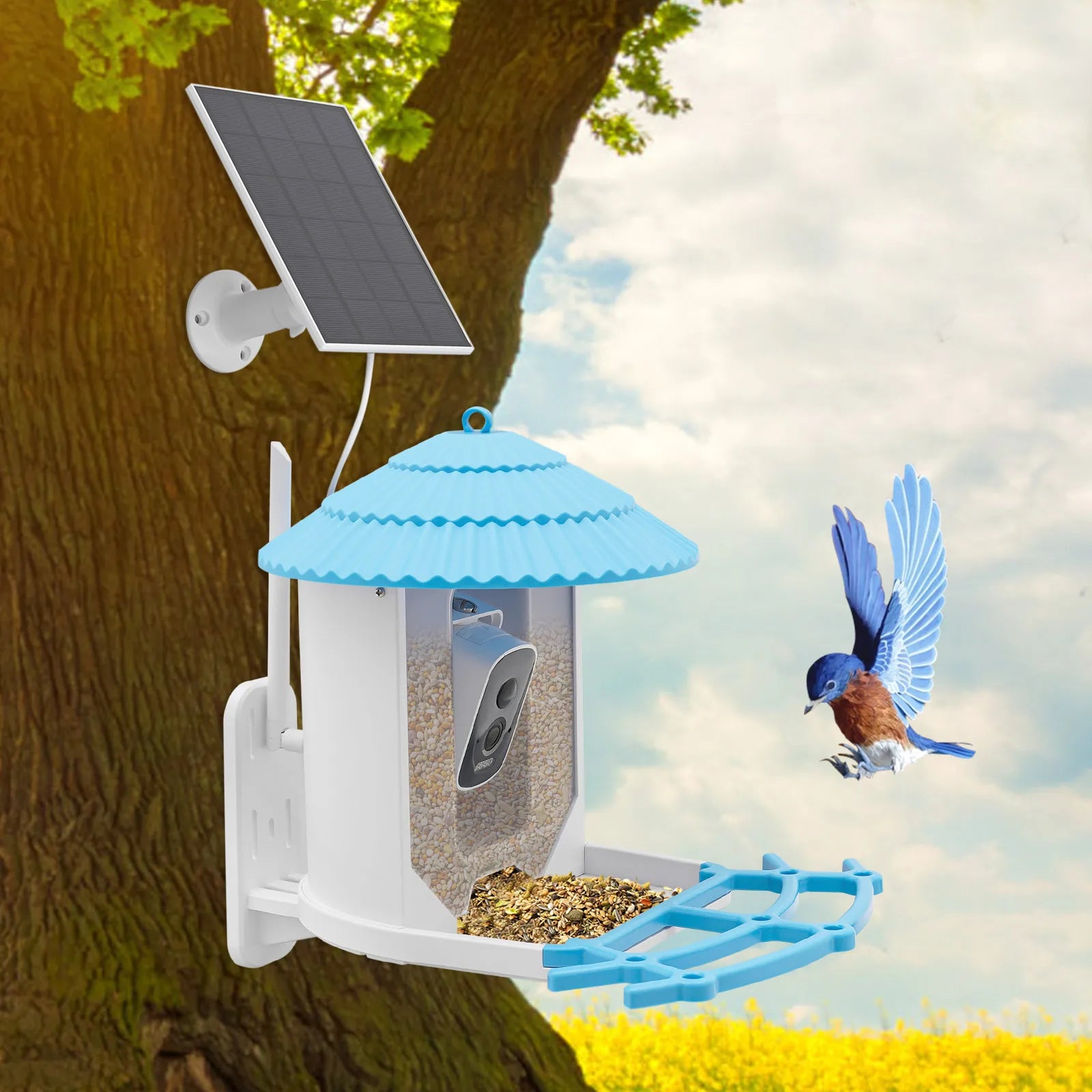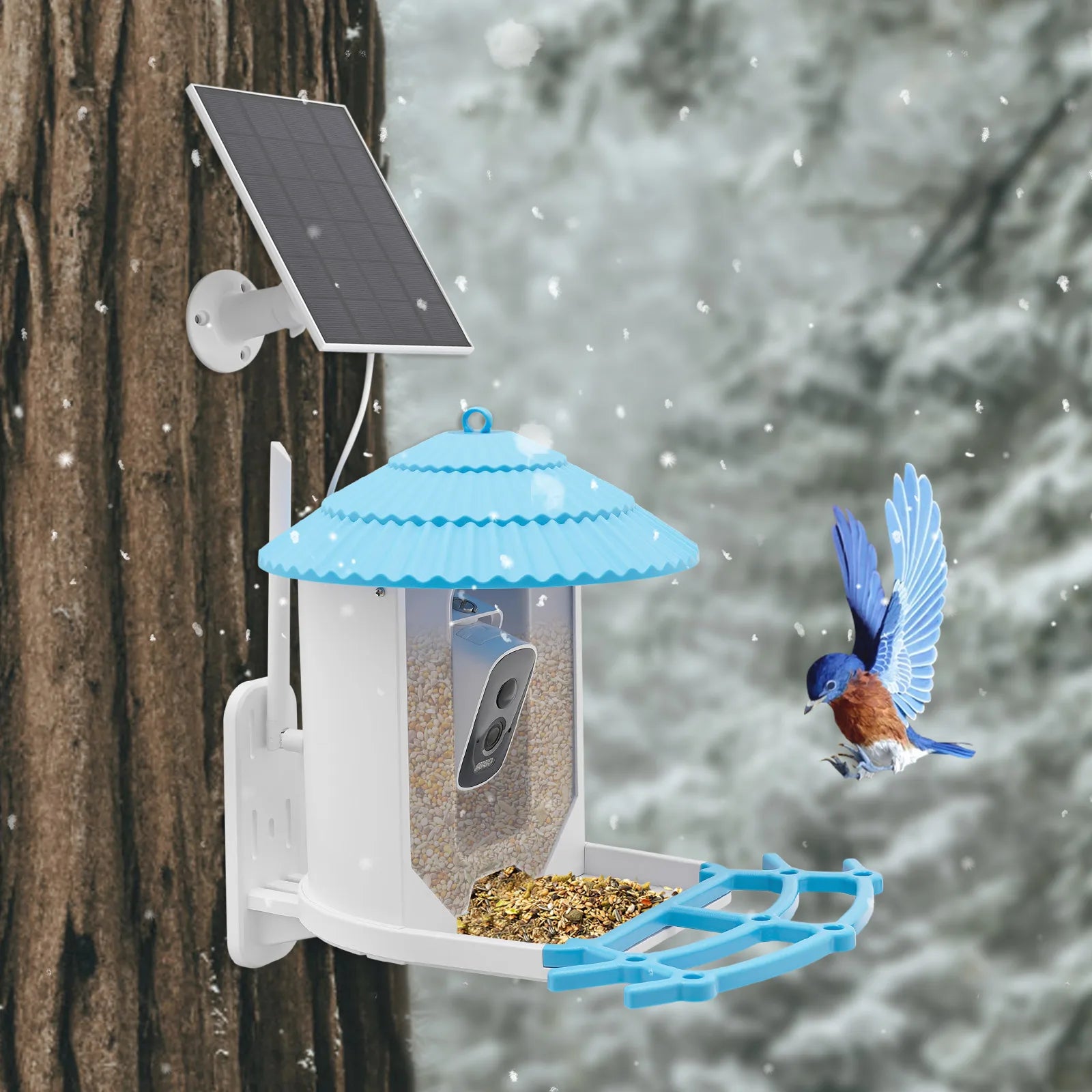 Smart Bird Feeder with 4MP Camera AI Recognizes 12,000+ Species, Solar Powered IP65 Waterproof & Night Vision