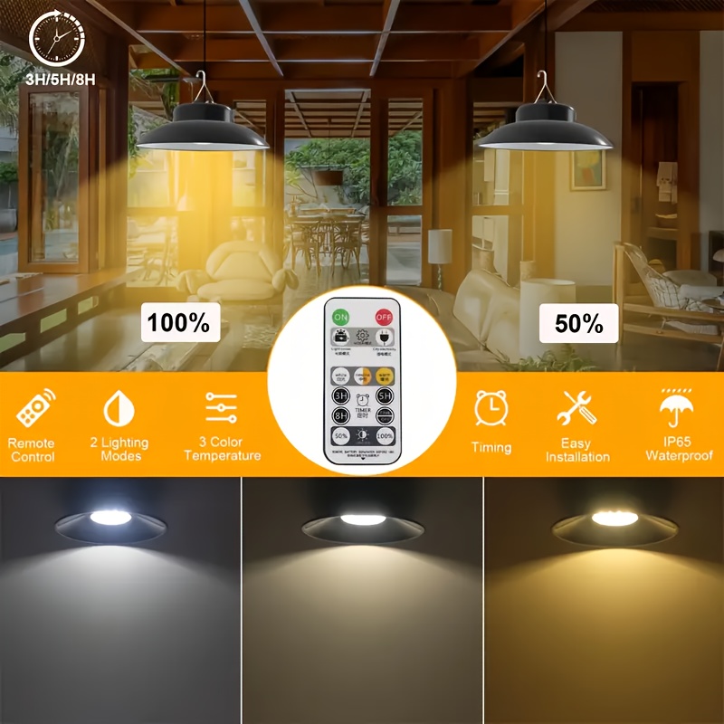 Solar Pendant Light(1 Tray 2), Upgraded Motion Sensor Light, Indoor Dimmable, With Remote Control, 3000K/4500K/6000K, 16.4-foot Cable, Outdoor Light With Remote Control, Suitable For Gardens, Terraces, Balconies, Shacks, Cour