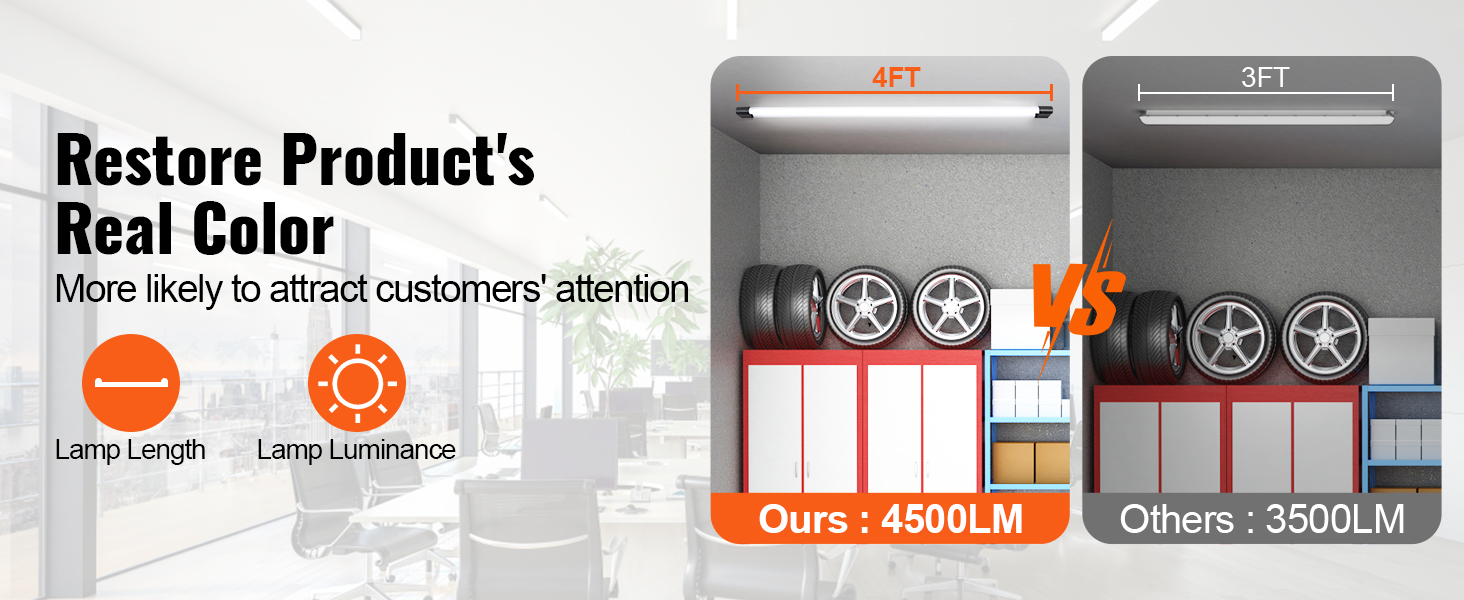Enhanced Illumination:This LED shop light delivers a brightness of up to 4500 lumens, illuminating your space effectively. The set includes four lights, with the option to connect up to six in a series, allowing for flexible installation based on the dimensions of your area.