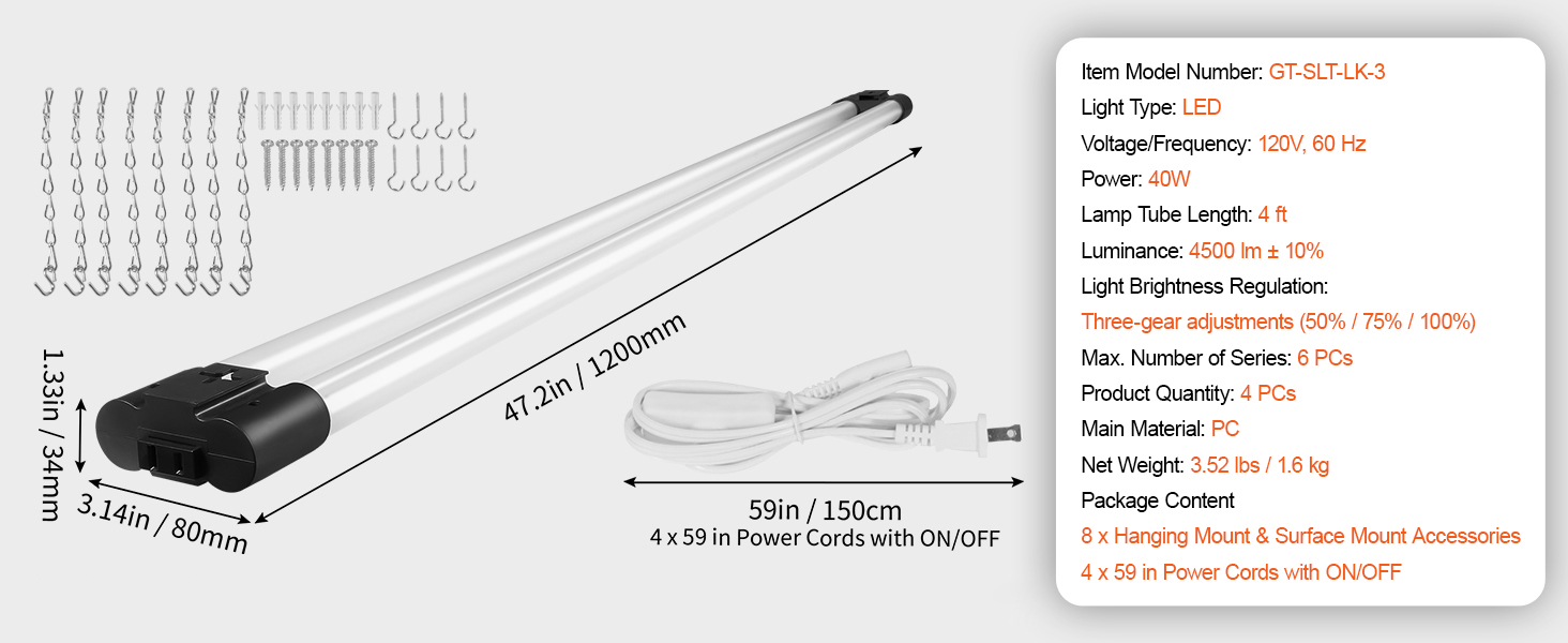 4PCs——Our linkable shop lights have 3 levels of brightness adjustment function (50%, 70%, 100%). You can adjust the brightness according to the environment, ensuring adequate lighting and energy saving.