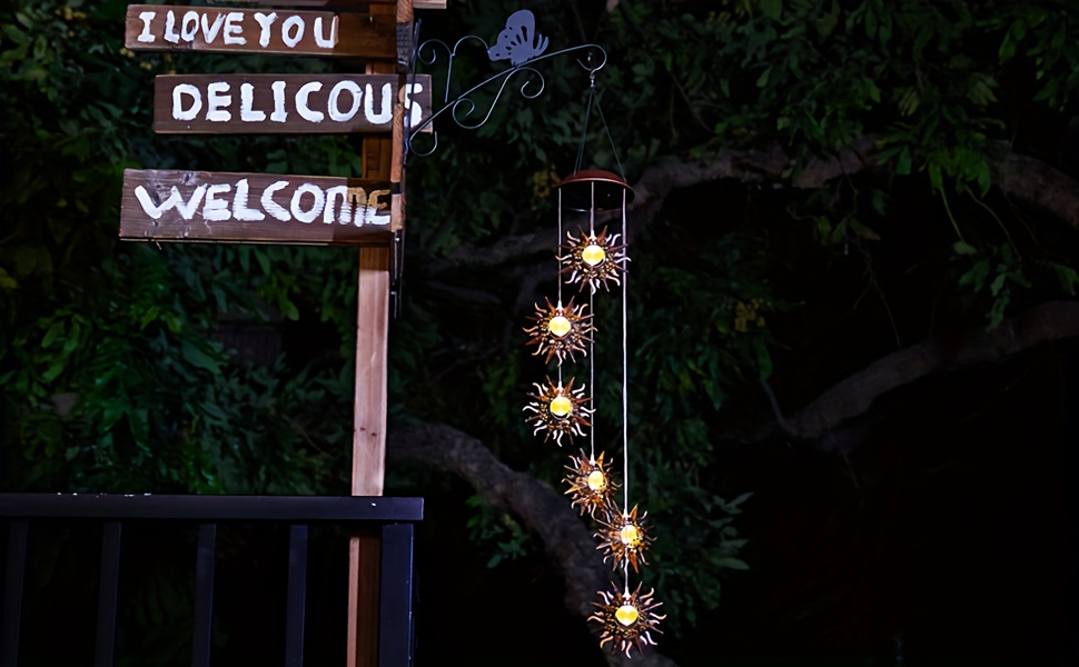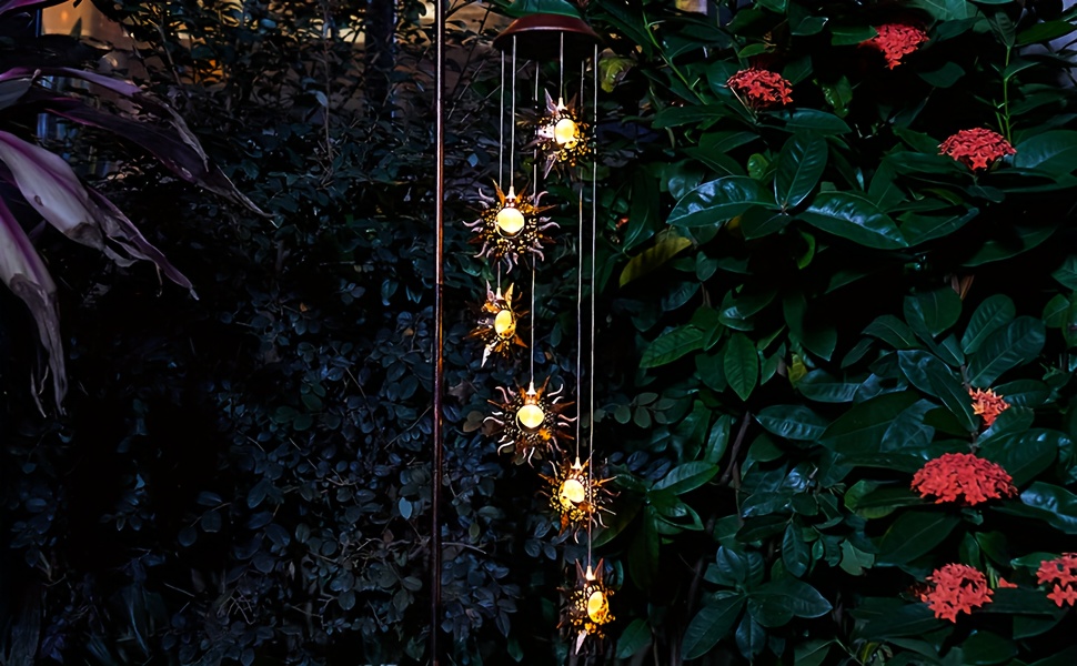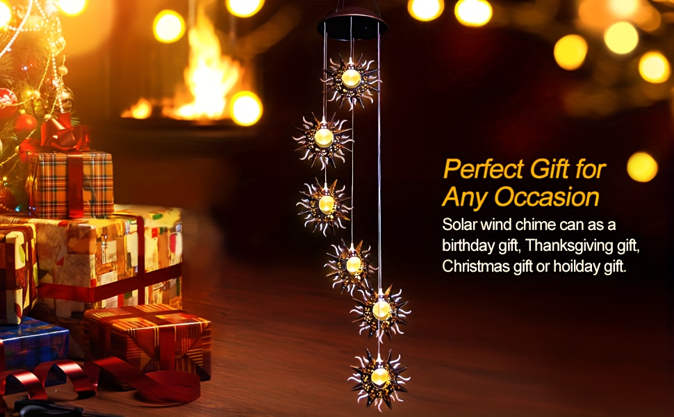 Tryme Solar Wind Chimes for Outside with Sun Solar Hanging Lights Outdoor Windchimes Garden Decor Gardening Gifts for Christmas Day Thanksgiving Day Grandma Neighbors